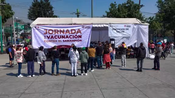 La Secretaría de Salud reforzó la estrategia nacional contra el sarampión y habilitó más de 21 mil puntos de vacunación. La población puede consultar ubicaciones en la plataforma “dondemevacuno.salud.gob.mx” o mediante el número telefónico 079.