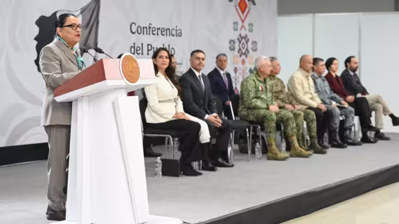 La secretaria destacó el programa “Sí al desarme, sí a la paz”, mediante el cual habitantes de siete municipios entregaron de manera anónima 352 armas de fuego a cambio de incentivos económicos, entre octubre de 2024 y febrero de 2026.