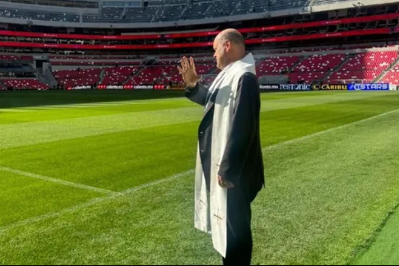 A poco de que se reinaugure el Estadio Azteca, un Obispo de la Arquidiosesis Primada de México bendijo la cancha y la capilla del recinto