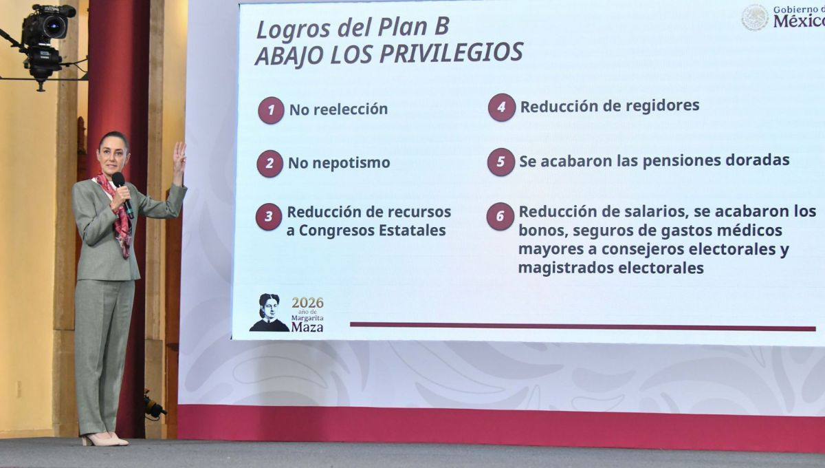 Entre los cambios mencionó la prohibición de la reelección en ciertos cargos, así como medidas contra el nepotismo. También subrayó la reducción de recursos destinados a los congresos estatales, con el objetivo de limitar gastos considerados excesivos.