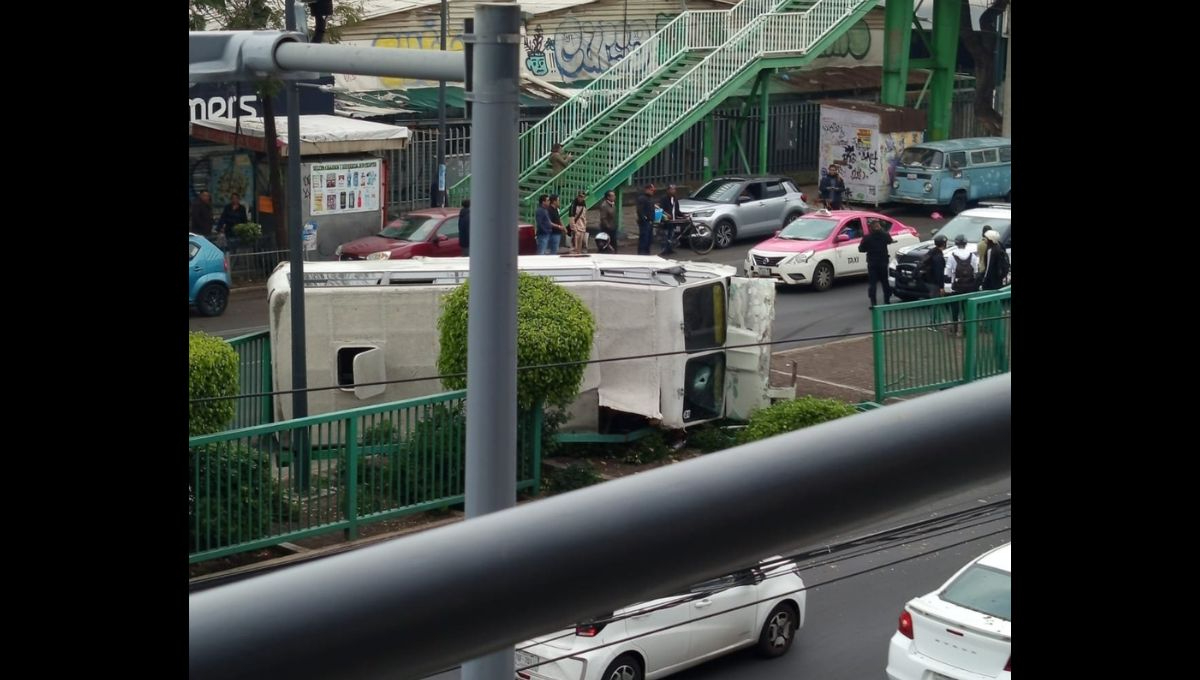 Microbús provoca carambola y vuelca en Canal de Miramontes; conductor intentó huir en Coyoacán