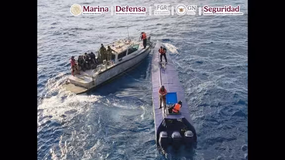 La Secretaría de Marina aseguró un semisumergible con 4 toneladas de cocaína en Manzanillo, Colima. Omar García Harfuch informó que en una semana se han decomisado casi 10 toneladas de droga.
