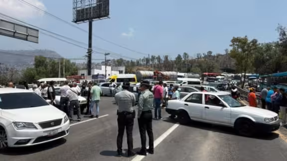 Taxistas bloquean la México-Pachuca en Tlalnepantla tras denunciar extorsiones y el asesinato de un compañero; exigen intervención de autoridades.
