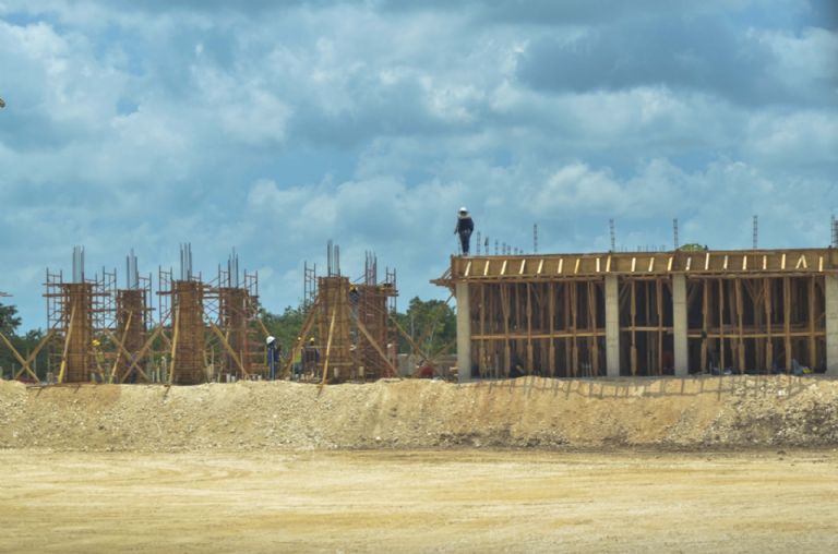 Durante el mediodía de ayer jueves, una ligera y rápida lluvia sorprendió a los trabajadores de las obras del Tren Maya, pero ni el agua ni la alta humedad que se desató después pudieron frenar las actividades de esta obra, que es visible desde la Carretera 180 o, como mejor le conocemos los cancunenses, “la brecha”.