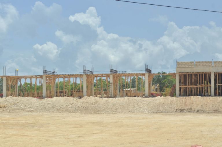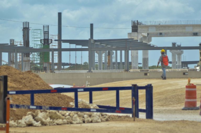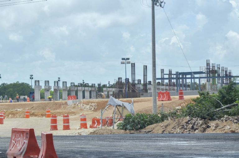 Desde el Aeropuerto Internacional de Cancún hasta la avenida Huayacán, primero se alcanza a distinguir el campamento del Ejército Mexicano, que prácticamente está terminado y ahí es donde pernoctarán los elementos castrenses que estarán cuidando las operaciones del Tren. Después se levantan las columnas que apoco a poco le dan forma a lo que será la estación más grande de esta obra que en las maquetas se observa también como una de las más vistosas.