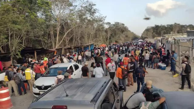 Así como también otro grupo de comuneros, se encargaron de bloquear el acceso al campamento militar, que coordina los trabajos del Tren Maya en este tramo, por lo que evitaron el acceso a estas instalaciones, colocando una valla humana, desde a muy temprana hora.