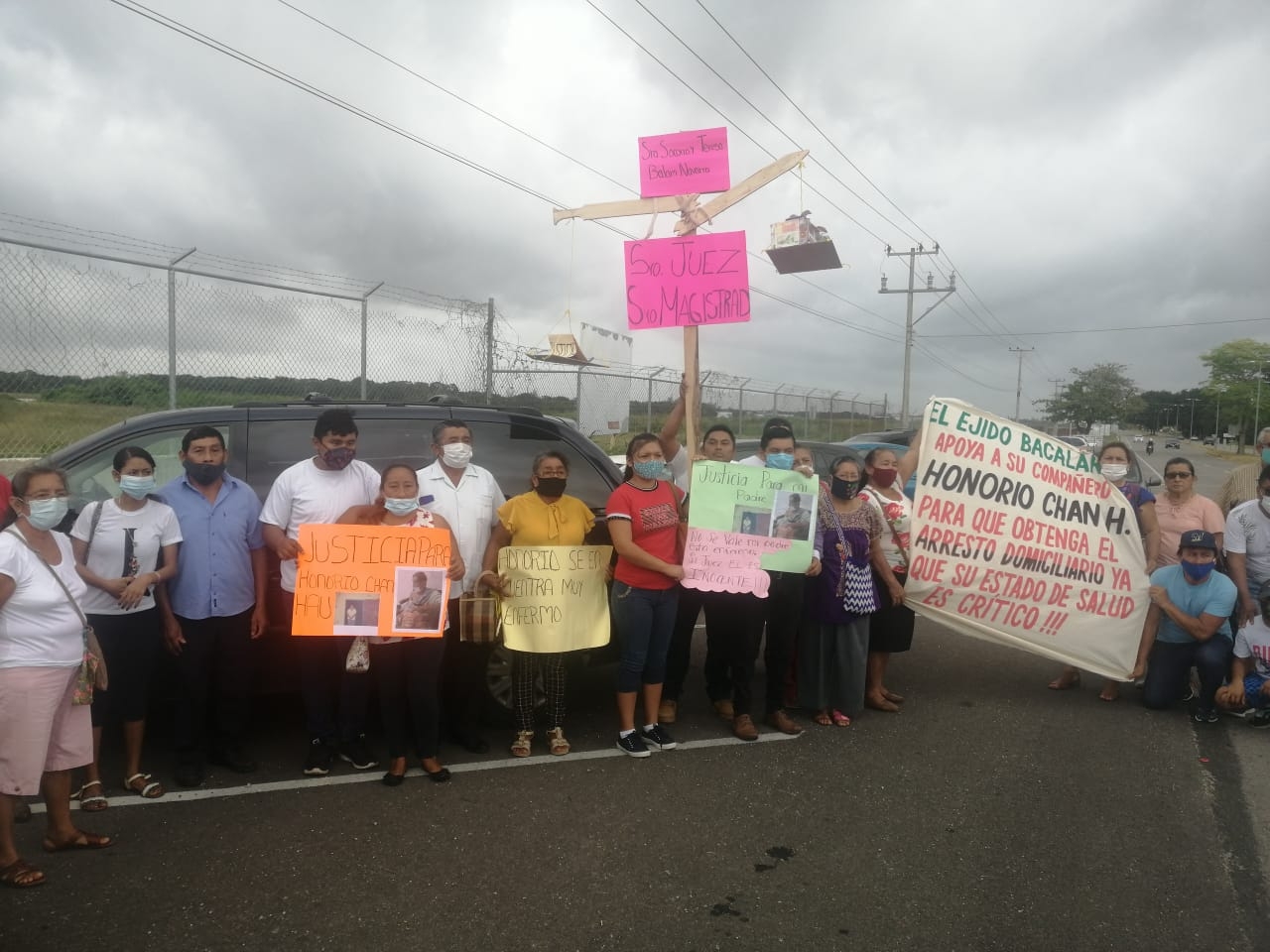 Habitantes de la ciudad de Bacalar se manifiestan en las afueras del Centro de Reinserción Social (cereso) de Chetumal, para exigir la pena de cárcel domiciliar para Honorio Chan quien lleva ocho años interno por el delito de violación.