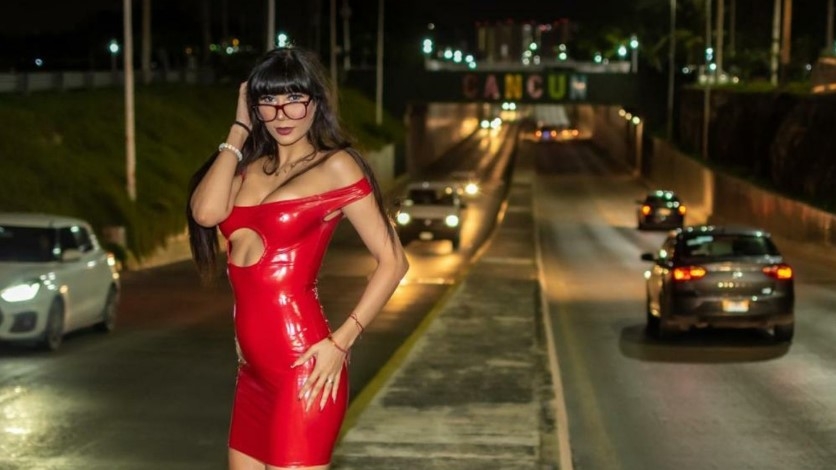¡Ahora en Cancún! Mía Marín muestra sus encantos en paso a desnivel