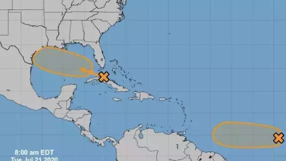 *Al norte de Cuba, aproximadamente a 745 kilómetros de Quintana Roo, con una trayectoria hacia el sureste del Golfo de México, y representa una probabilidad de 40 por ciento de evolucionar como ciclón tropical.