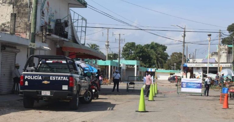 La mañana de este martes el mercado Lázaro Cárdenas de Chetumal amaneció blindado con la presencia de 27 elementos policías y filtros sanitarios. Buscan disminuir el crecimiento de contagios por COVID-19.