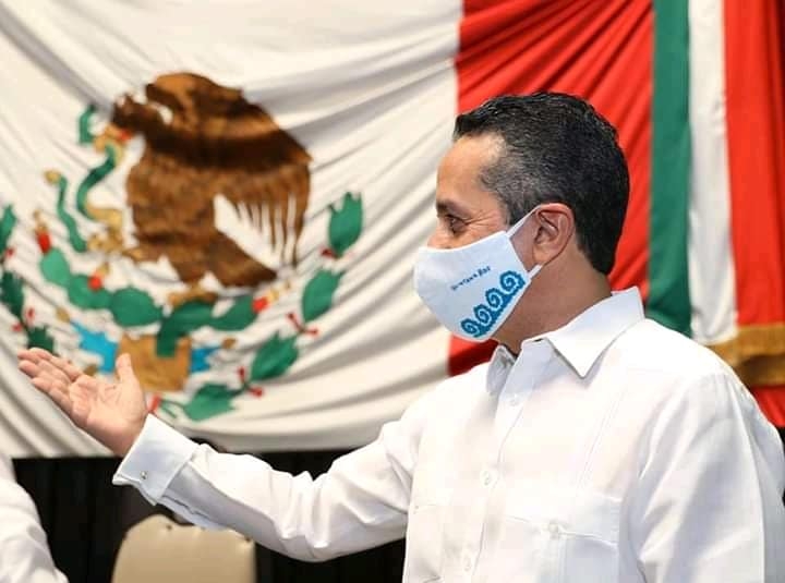 Este martes el gobernador de Quintana Roo, Carlos Joaquín González, entregó su IV informe de gobierno ante el Congreso Local, acto que llamó la atención por usar un cubrebocas diferente.