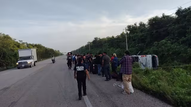 Sin identificar, tres de los muertos tras volcadura de autobús en Carrillo Puerto