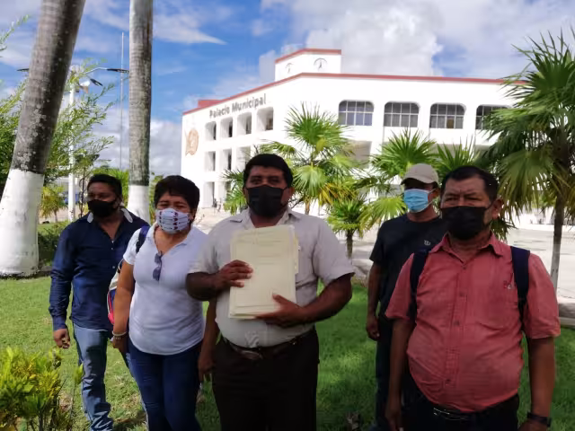 El grupo de cinco personas viajaron desde El Tesoro, Cibalito y Cerro de las Flores, para entregar en la alcaldía un pliego petitorio de 21 comunidades asentadas en los límites estatal con Campeche. La comisario ejidal de El Tesoro, Mayra Tronco Vázquez, aseguró que las demandas de los habitantes de las 21 comunidades prácticamente son: caminos rurales, caminos sacacosechas, seguridad pública, vivienda digna, servicios de salud, alumbrado público, entre otros.
