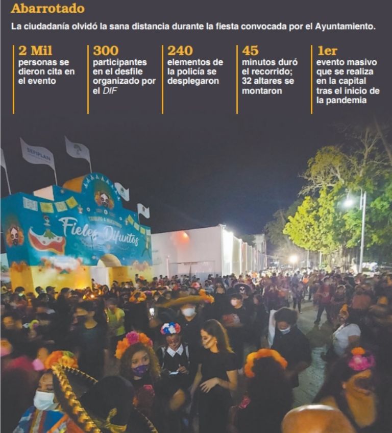Tras la entrada en vigor del Semáforo Verde en la Zona Sur de Quintana Roo, los habitantes de Chetumal olvidaron los protocolos sanitarios contra el COVID-19 en la fiesta municipal del Día de Muertos