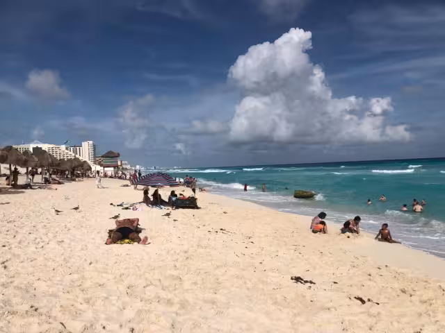 En el lugar prevalecen familias y un número considerable de menores de edad que disfrutan de las aguas del caribe mexicano, además de aprovechar que el día está fresco y no caluroso.