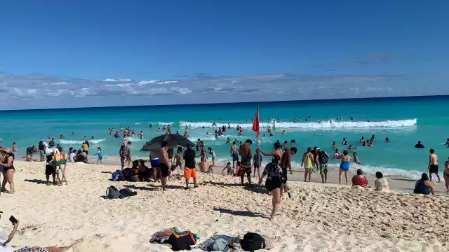 Gran afluencia de turistas se registra en Playa Delfines en Navidad, donde unos mil 200 turistas se están dando cita para disfrutar del buen clima.