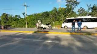 Automovilista dormita y sale del camino en carretera rumbo a Tulum