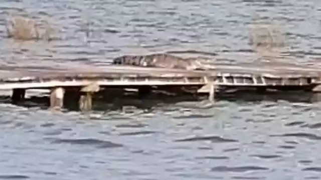 Cocodrilo causa pánico en el muelle de Bacalar: VIDEO