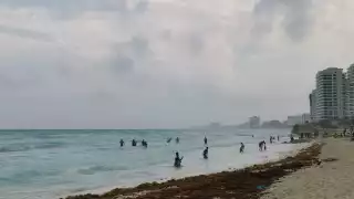 Bañistas acuden a playas de Cancún a pesar de la lluvia y el sargazo: FOTOS