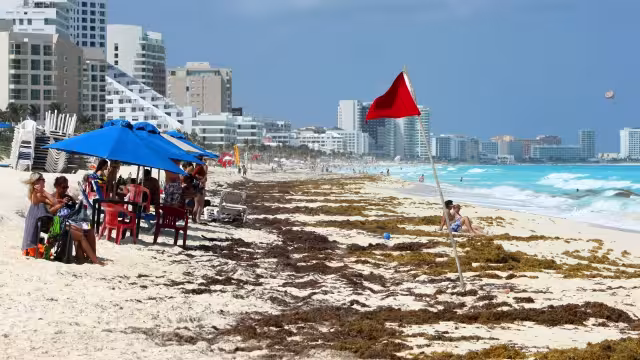 De lo que no se han librado las playas es del recale de sargazo en las que se encuentran en la zona de mar abierto que corresponde de Playa Gaviota Azul hasta Playa Delfines, sin embargo en donde se notó este día una gran concentración de este producto marino fue en Playa Marlín, en donde se encontraron alfombras marrón en la arena e incluso se notaron las islas de sargazo acercándose a los arenales desde el agua.