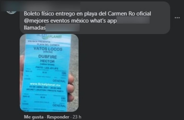 Así mismo, los presuntos 'RP' han contestado mensajes sobre la compra de los boletos para acceder a estas fiestas, otorgando números de teléfono para entablar contacto con ellos.