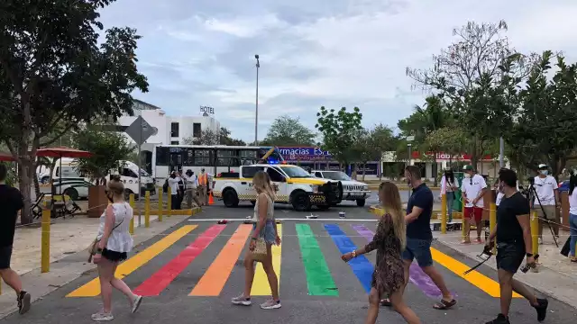En el margen del “Día Internacional contra la Homofobia y Transfobia", el grupo colectivo Foro Cuir realizo el primer cruce peatonal pintado con los colores de la “Bandera del orgullo” en Cancún.