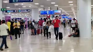 Terminal 4 del Aeropuerto de Cancún presenta aglomeración de viajeros