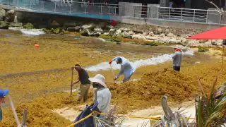 Recale de sargazo complica trabajos a Zofemat en Playa del Carmen