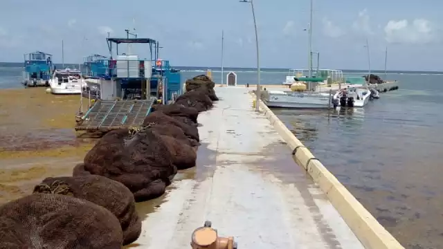 El Ayuntamiento aportó el diésel para que el Sargazo sea trasladado hasta zonas establecidas, mientras que la Secretaría de Marina utilizan las balsas sargaceras para recolectar el alga que se encuentra en el agua y posteriormente es descargada en el muelle.