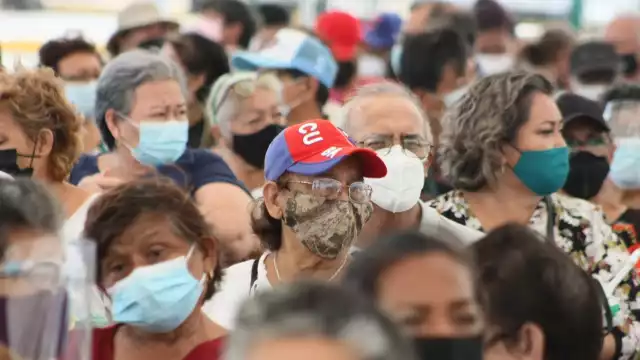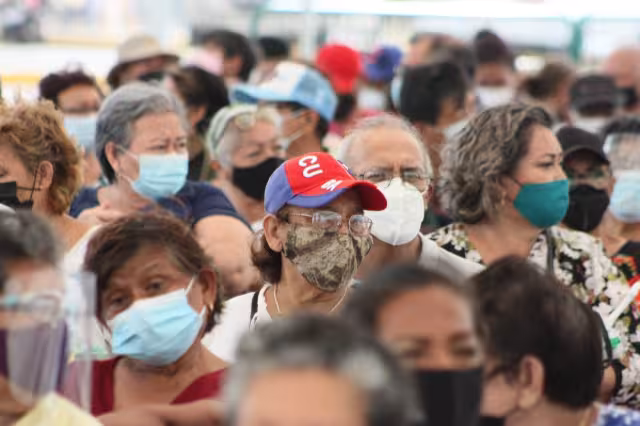 Con aproximadamente tres mil personas distribuidas en las áreas de espera y una larga fila, inicia este lunes 3 de mayo la aplicación de la segunda dosis de la vacuna contra COVID-19 de la farmacéutica SinoVac, para los adultos mayores de 60 años de edad, en Cancún, Quintana Roo.