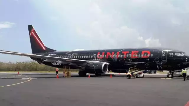 El Jet bimotor con matrícula N36272 de la aerolínea United, fue diseñado por un artista de cine taiwanés-estadounidense de nombre Doug Chiang, destacando los colores que distinguen la temática de la película para conocedores, lo que causa expectación y admiración total para los amantes de las galaxias.