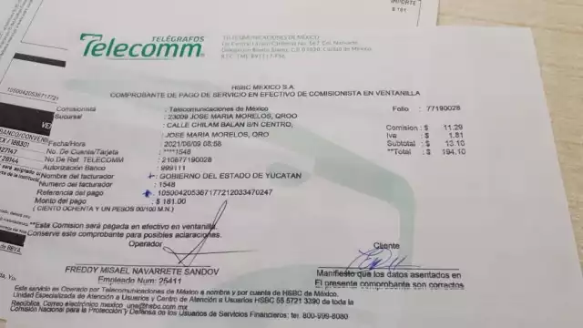 Dijo que él pagó el Telecom 181 pesos, que es lo que cuesta el acta de nacimiento en Yucatán, desde la mañana del pasado miércoles.