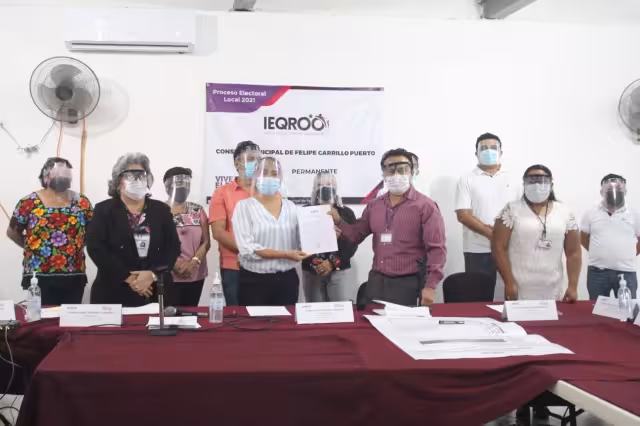 Se trata de los municipios de Isla Mujeres, donde recibió su constancia Atenea Gómez Ricalde, en José María Morelos de Le entregó a Erik Noe Borges Yam, en Lázaro Cárdenas a Omar Emir Bellos Tun, en Felipe Carrillo Puerto a Maricarmen Candelaria Hernández Solis, en Puerto Morelos a Blanca Merari Tziu Muñoz, en Tulum a Marciano Dzul Caamal y en Othón P. Blanco a Yensunni Martínez Hernández.