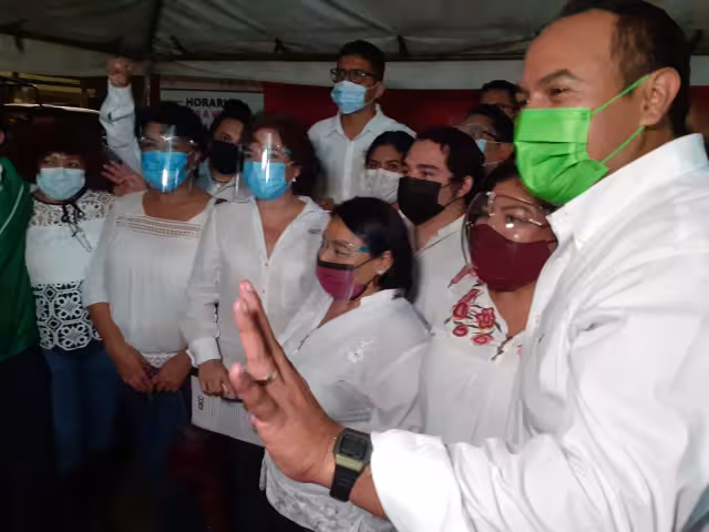 Cientos de simpatizantes de Morena se arremolinaron a las afueras del IEQROO  para recibir y vitorear a la ganadora de los pasados comicios electorales.