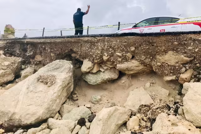 Las fuertes lluvias que azotaron en el municipio de Tulum, ocasionaron un deslave en la carretera Boca Paila-Punta Allen; la zona fue acordonada por personal operativo de Protección Civil en tanto se realiza el dictamen de riesgos.
