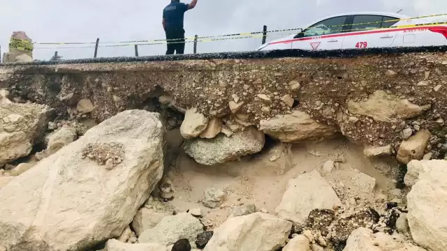 Las fuertes lluvias que azotaron en el municipio de Tulum, ocasionaron un deslave en la carretera Boca Paila-Punta Allen; la zona fue acordonada por personal operativo de Protección Civil