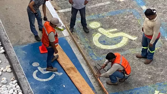 Trabajadores de la empresa promotora de reordenamiento urbano, concesionaria de los parquímetros en Playa del Carmen, cerraron rampa para discapacitados y colocaron dos cajones más para el cobro a vehículos.