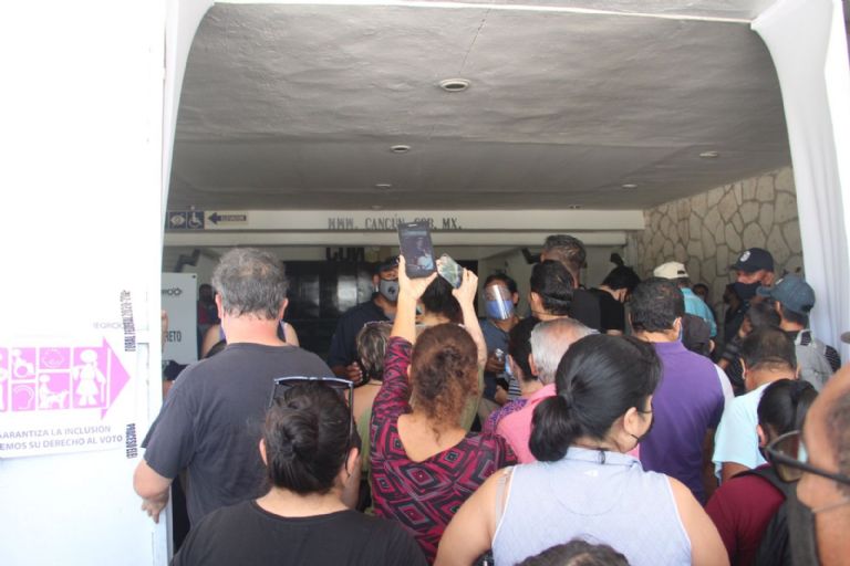 Con una aglomeración de más de 50 personas en el acceso de la entrada principal del Palacio Municipal de Benito Juárez y con malestar de ciudadanos que exigen su derecho constitucional a votar es como transcurre la jornada en la segunda casilla especial habilitada en este ayuntamiento.