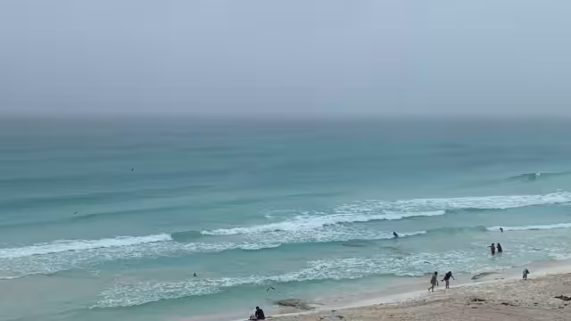 Sin embargo, un estimado de medio centenar de turistas se encontraban en la playa disfrutando de las aguas del Caribe Mexicano, no les importó la lluvia ni el cielo nublado grisáceo, el cual contrastaba con el color turquesa del mar.