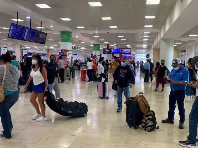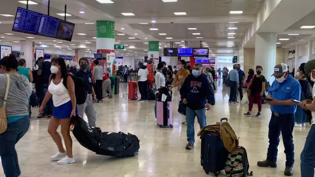 En las inmediaciones del aeródromo hay cerca de 700 personas a la espera de tomar sus vuelos para volver a su lugar de origen luego de vacacionar en el Caribe Mexicano.