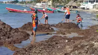 Trabajo social de infractores ayuda al retiro de sargazo en Playa del Carmen