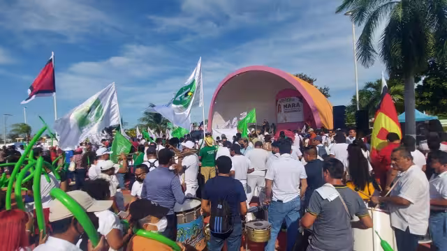 A menos de 20 minutos del evento de inicio de campaña de Mara Lezama, candidata a la gubernatura de Quintana Roo en el parque del Hábitat 2 en Chetumal, ya se congregan al menos mil personas en los alrededores, donde se mantiene un despliegue policial de cierre de calles.