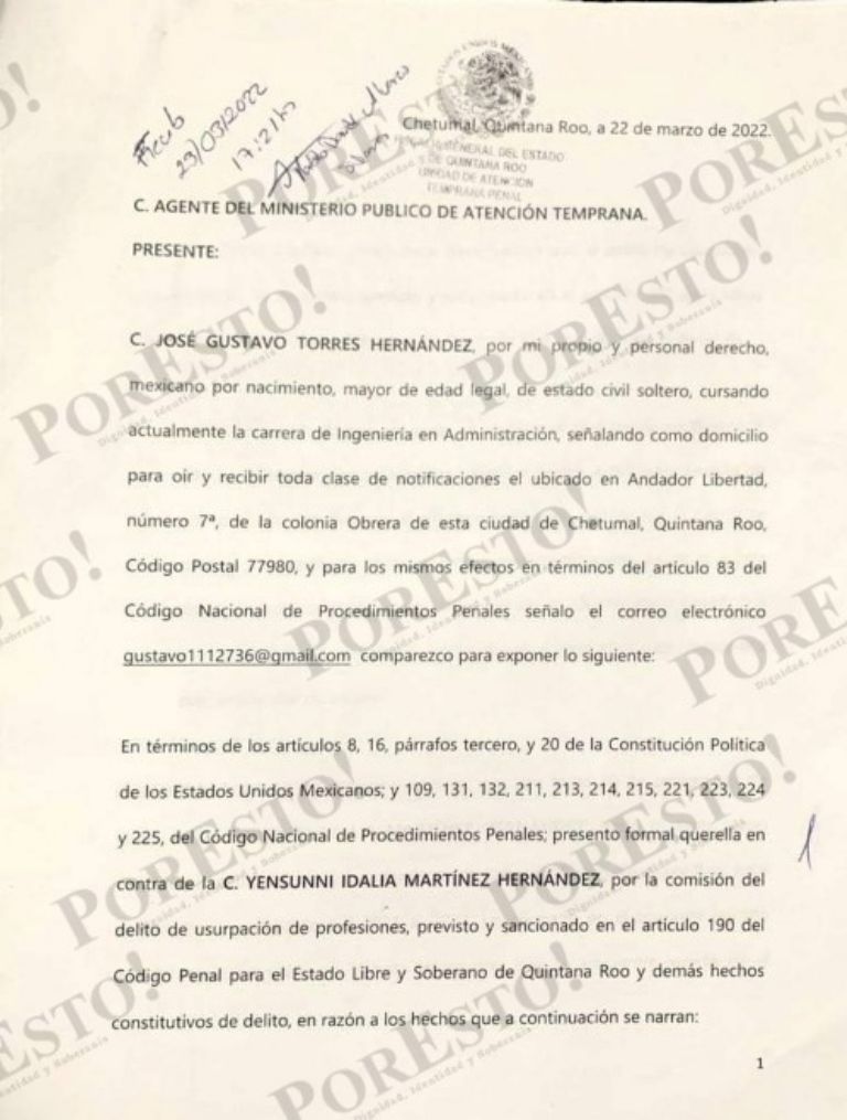 Esa denuncia se dirime en la FGE, donde el denunciante presentó como pruebas una serie de documentos oficiales donde Martínez Hernández firma como licenciada.