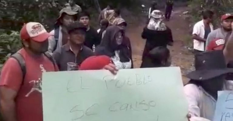 A la entrada del rancho, estuvieron cerca de una treintena de personas, entre mujeres y productores. La mayoría de ellas portaban carteles en donde pedían que ya no hubiera más deforestación. También mencionaban que están cansadas de tantas amenazas al pueblo, de parte de Samuel Wicab, y por lo mismo, pedían que esa persona se fuera del pueblo.