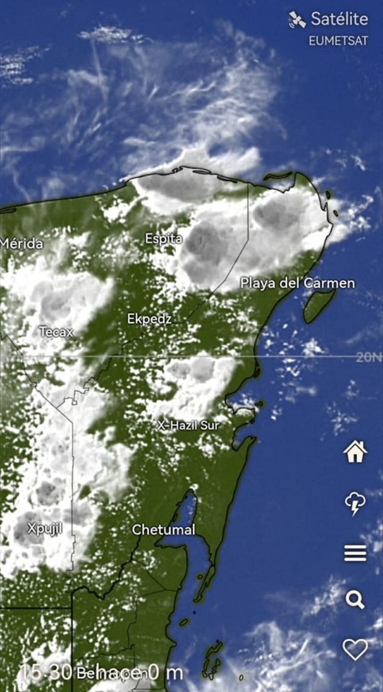 También la Coeproc informó que una vaguada (Canal de Baja Presión) localizada en superficie sobre la región peninsular en interacción con la afluencia de aire marítimo tropical con variable contenido de humedad proveniente del Golfo de México y del Mar Caribe hacia dicha región, originará cielo parcialmente nublado con incremento de nublados durante el día, probabilidad de lluvias muy fuertes con puntuales intensas acompañadas de actividad eléctrica, probable caída de granizo y rachas de viento de 40 a 50 km/h en zonas de tormenta más frecuentes por la tarde y noche sobre la mayor parte del Estado de Quintana Roo, las temperaturas serán muy calurosas a bochornosas en el transcurso del día y cálidas por la noche y madrugada sobre el Estado.