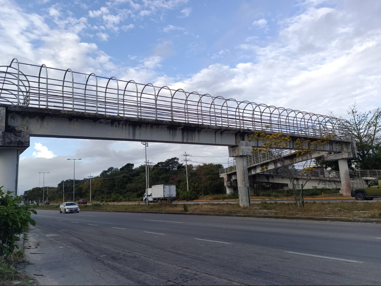 El puente tiene más de 15 años que se hizo de la mano de la Secretaría de Infraestructura, Comunicaciones y Transporte (SICT, antes SCT), y en su momento fue una estructura más que necesaria para poder cruzar la autopista 307 para tomar las vans de servicio foráneo que llevaban a las personas a sus centros de trabajo. Sin embargo, ahora por como luce, ya se vuelve incluso de pensarse el subirse.