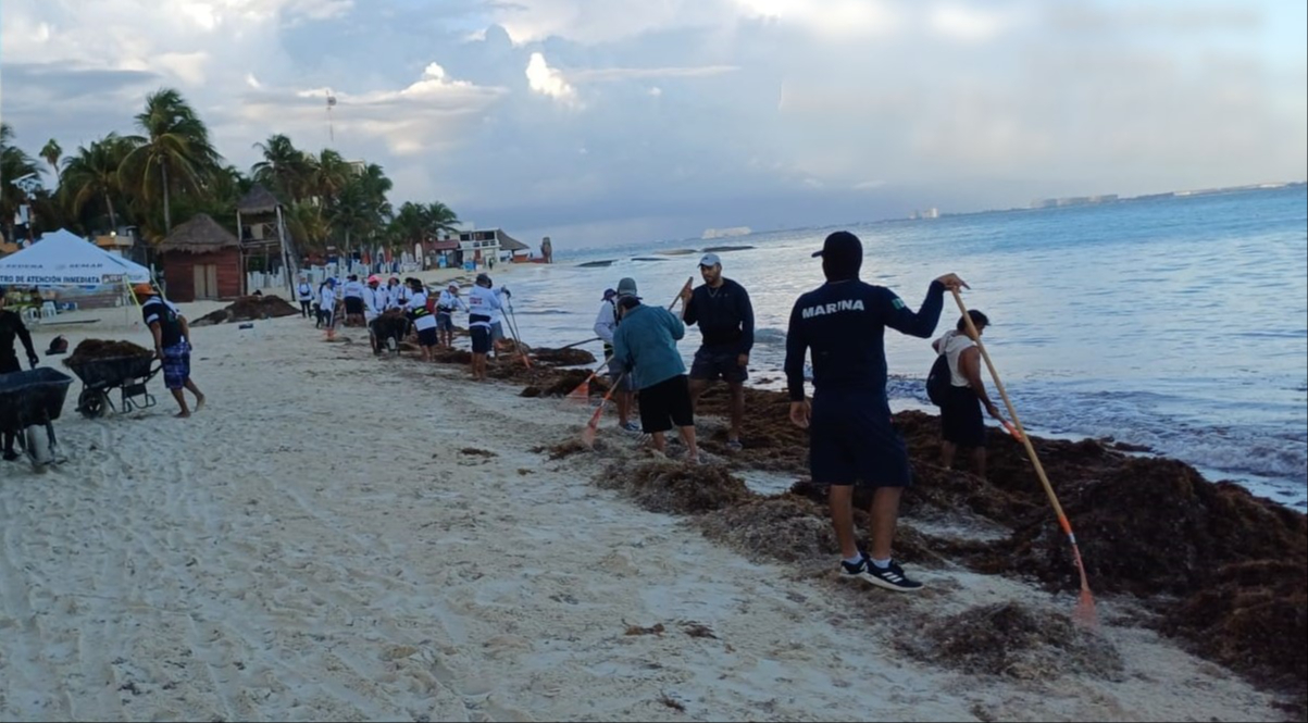 Se contabiliza esa recolección entre las playas de los municipios de Isla Mujeres, Benito Juárez, Puerto Morelos, Playa del Carmen, Tulum y Othón P. Blanco, se desplegó 185 elementos de la institución, cuatro drones y se mantienen empleadas 16 unidades de superficie.