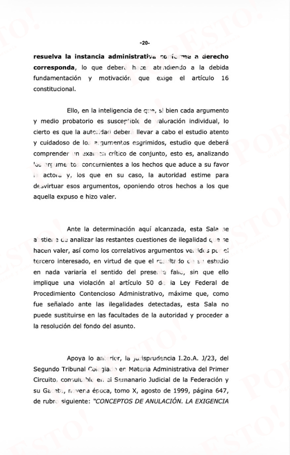 Sin embargo, el expediente, consultado en el TFJA por Por Esto!, señala -tras la explicación de argumentos y alegatos- que: “Por las razones expuestas, lo procedente es que la autoridad demandada, emita otra resolución en la que deberá pronunciarse sobre cada uno de los argumentos hechos valer por la actora, tomando en consideración la declaratoria de fama de la marca XCARET y hecho lo anterior, funde y motive debidamente la resolución que-20- resuelva la instancia administrativa conforme a derecho corresponda, lo que deberá hacer atendiendo a la debida fundamentación y motivación que exige el artículo 16 constitucional”.