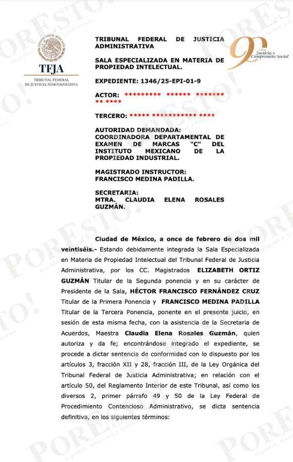 La Sala Especializada en Materia de Propiedad Intelectual publicó, el 30 de marzo del 2026, el expediente 1346/25-EPI-01-9, que tenía como fecha de presentación ante el Tribunal Federal de Justicia Administrativa, el 4 de agosto del 2025 / Fotos: Especial Por Esto!