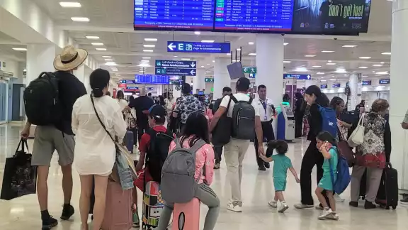 Un mexicano que regresaba al vecino país comentó: “Allá sí está grave la situación por la nieve; aquí en Cancún hay sol, pero los vuelos dependen de los aeropuertos del norte”.